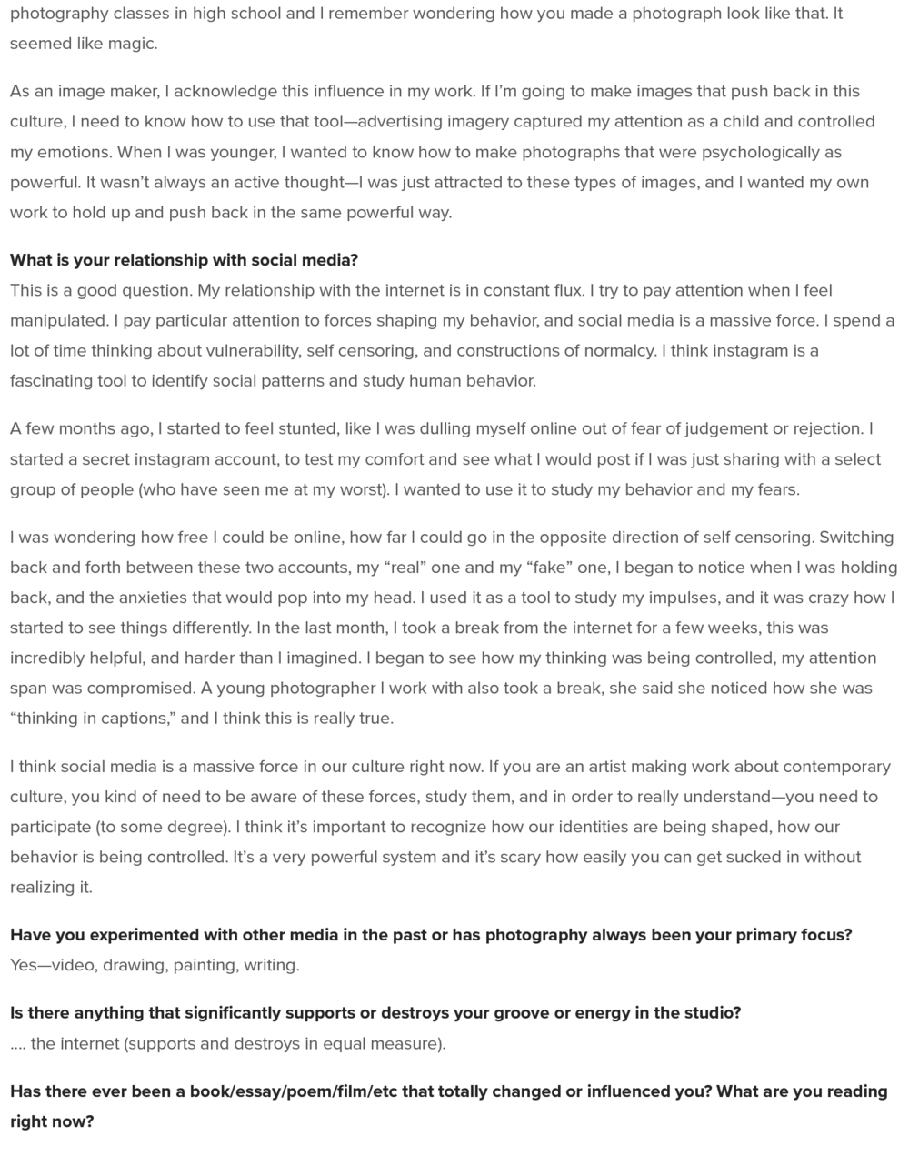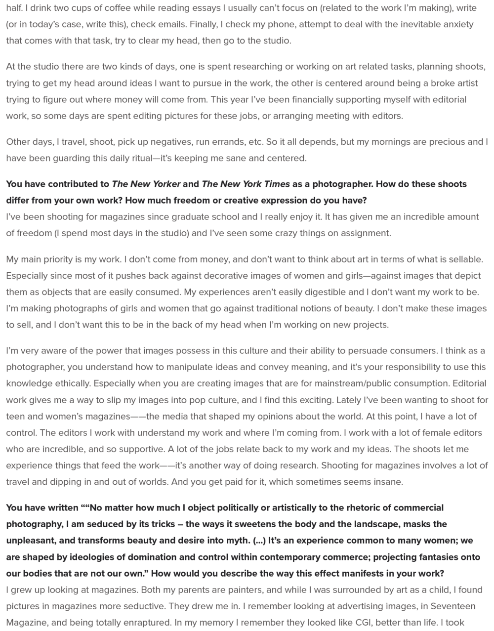 Elephant Magazine, Interview by Ariela Glitten