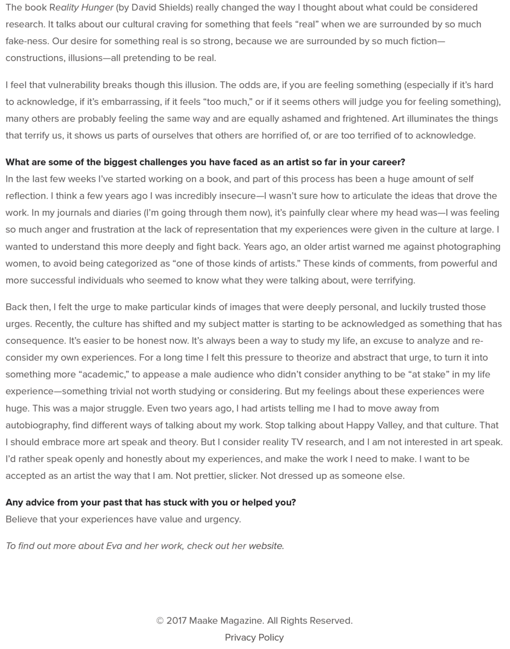 Talk Magazine: Eva O'Leary & The New Documentary